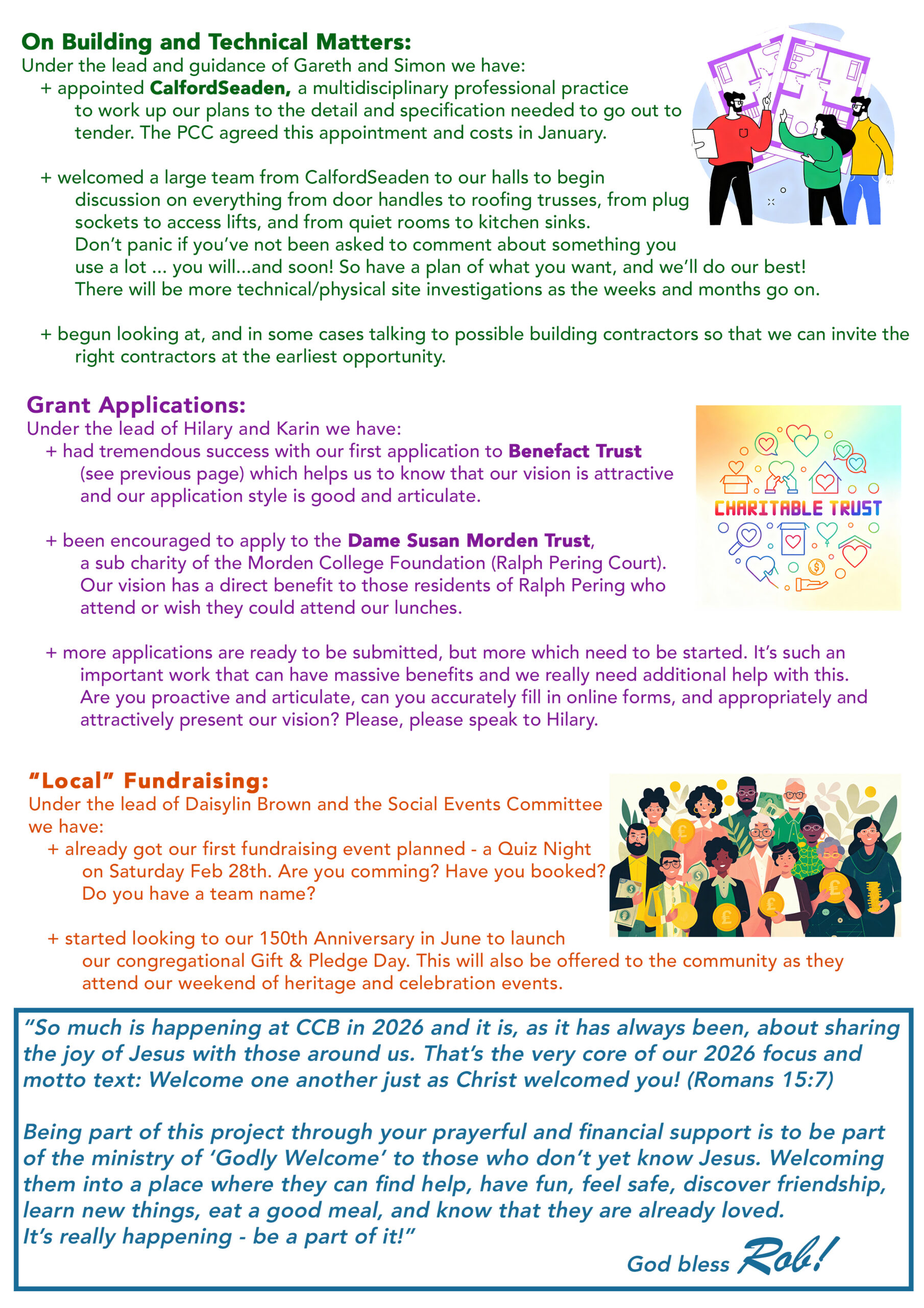 Regardless of whether you are advancing in age, or still at school,  or  whether your needs are more specific that other peoples’, we want to throw open our doors onto the High Street to you and everyone who needs a friend; a meal; something to do; training; a place to go; or a place to find all kinds of help and enjoyment. Our plans will help us do this better and for more of our community.